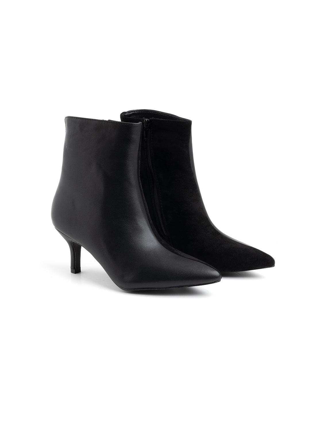 Pointed toe ankle boot with front seam - BLACK