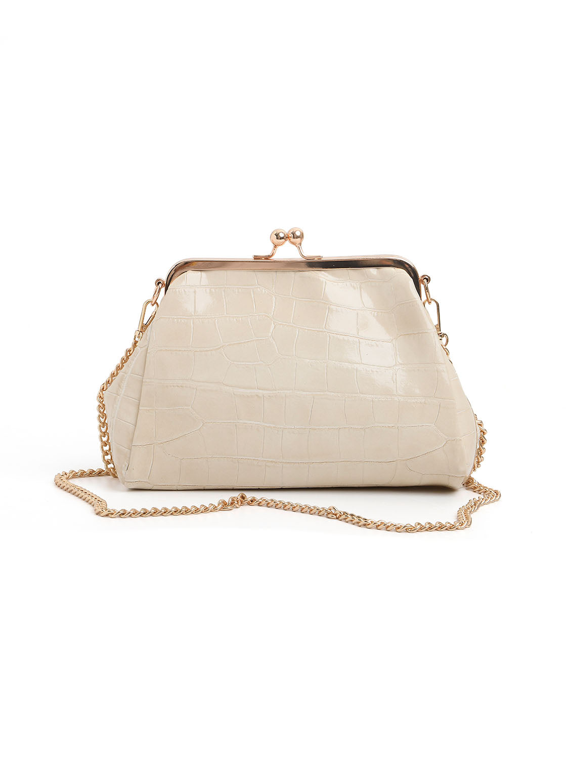 Clutch a scatto in vera pelle effetto cocco - PANNA